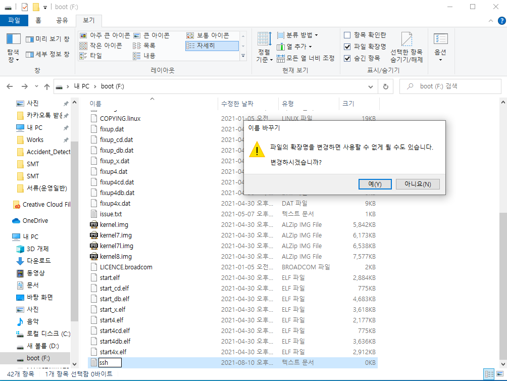 만들어진 텍스트문서의 이름을 ssh로변경해줍니다. .txt 확장자도 제거해줍니다.