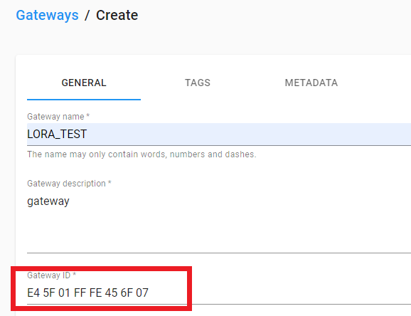 * 게이트웨이의 경우 고유한 ID가 생성됩니다. 이것은 게이트웨이 EUI라고하며 모든 LoRa 네트워크 서버 (TTN, ChirpStack)로 게이트웨이를 등록하는 데 필수입니다.
