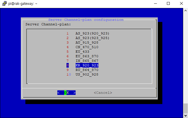 주파수대역을 선택해줍니다. 한국은 KR 920)923을 선택해줍니다.