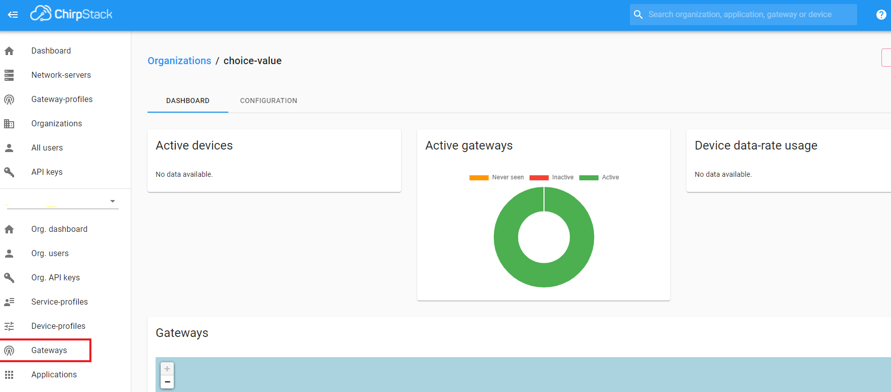 게이트웨이 설정을 한 후 ChirpStack의 웹 페이지를 열어 게이트웨이를 등록합니다