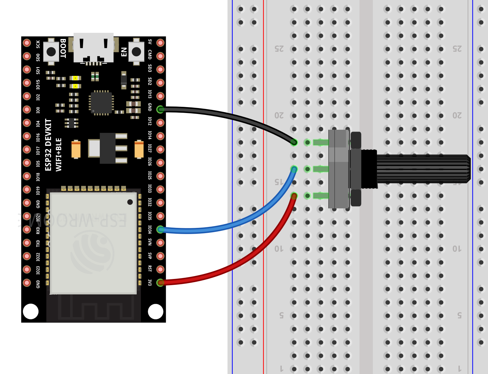 ESP32로 아날로그 값을 읽는다는 것은 0V와 3.3V 사이의 다양한 전압 레벨을 측정할 수 있습니다.
